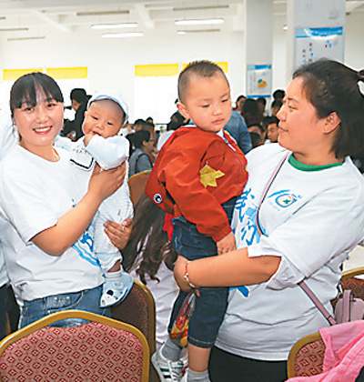 5月9日,几名“安康家园”公益项目受助者在四川成都怀抱子女合影。陈维松摄(新华社发)