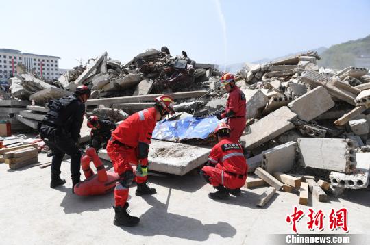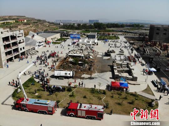 5月12日,“行动起来,减轻身边的灾害风险”——5?12防灾减灾日主题宣传教育活动在兰州搜救基地举行。图为地震救援演练现场。 杨艳敏 摄
