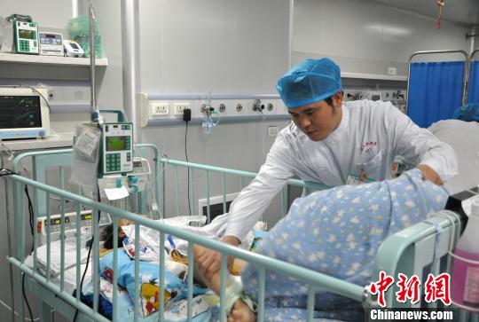 图为蒋小辉在护理病房里的危重症患儿。 黄艳梅 摄