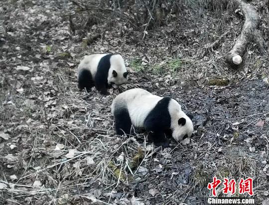 “大熊猫为独居动物,野生大熊猫幼仔大约会在1.5岁时离开母亲独立生活,但仍然在母亲的巢域内活动,到2.5岁左右才会离开母亲的巢域,去建立自己的领地。”据工作人员介绍,2017年年底至今,多处红外相机拍摄到了大熊猫妈妈带着幼仔活动的画面,画面中大熊猫幼仔跟在妈妈的后面学习觅食等生存技能。