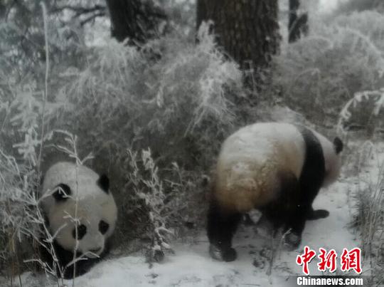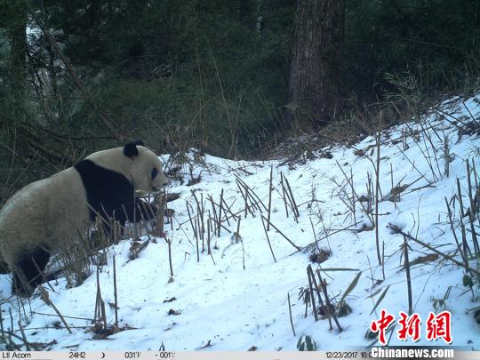 中新网兰州5月14日电 (何礼文)5月初,甘肃白水江国家级自然保护区工作人员在第一季度监测巡护工作中回看红外相机时发现,2017年年底至今,多处红外相机拍摄到了大熊猫妈妈带着幼仔活动的画面,野生大熊猫“抢镜”。