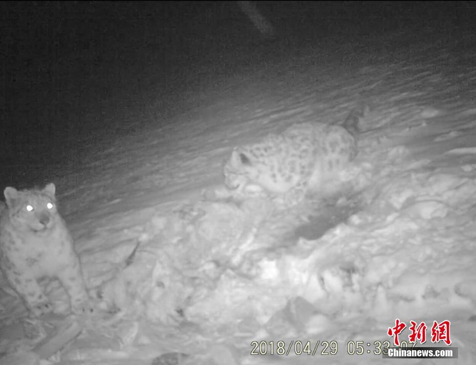 四川卧龙保护区:两个“雪豹家庭”外出夜巡(图)