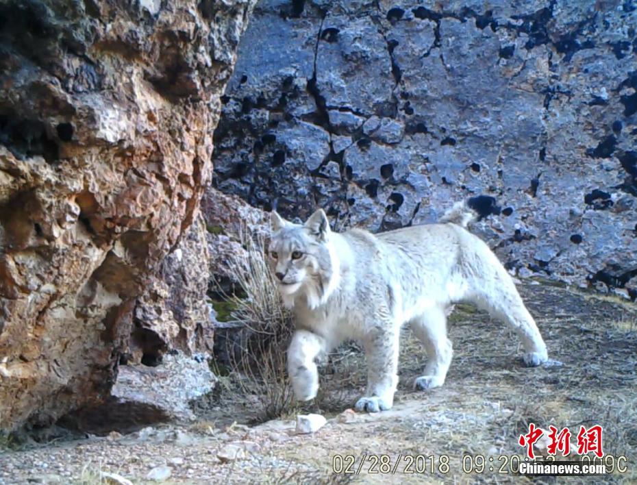 红外相机拍摄到的猞猁。文/赵朗 曾嘉 监测画面