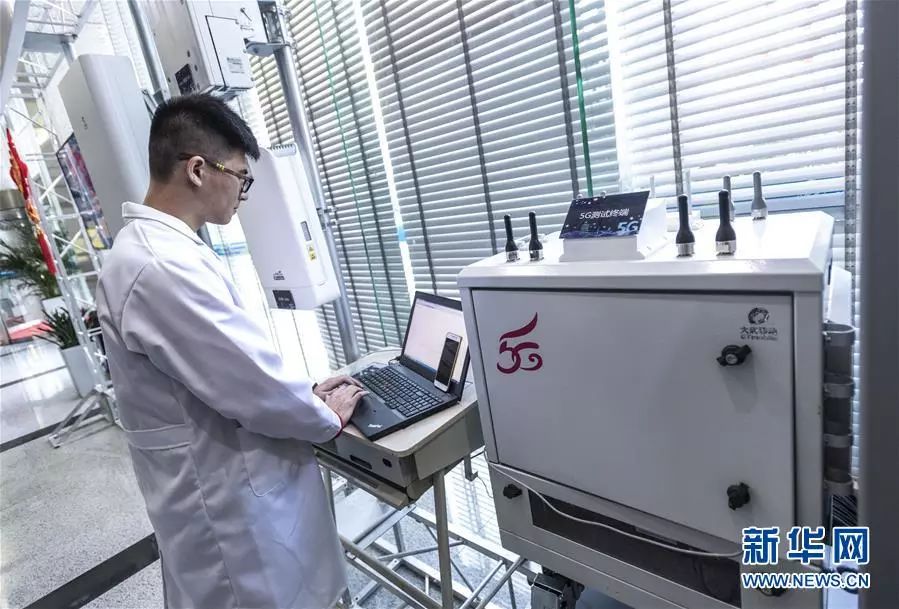 2018年2月5日,工作人员在5G试验基站上测试带宽。新华社记者 熊琦 摄