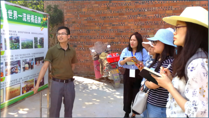 奉节县脐橙产业发展中心负责人向记者介绍脐橙提质增效工程。
