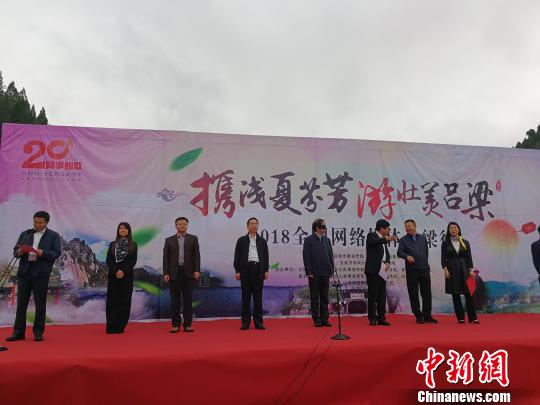 21日,“携浅夏芬芳游壮美吕梁”2018全国网络媒体吕梁行大型采访活动在吕梁市交城县卦山景区启动。 范丽芳 摄