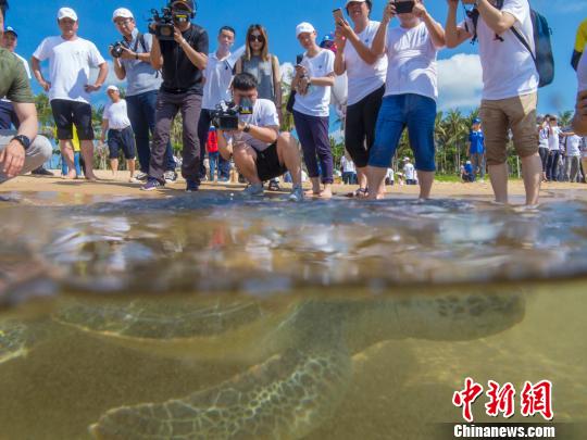 活动当天,37只福建、广东、海南、广西等四省区近期救助、罚没的海龟在三亚海棠湾沙滩被集中放流。科研人员还在其中5只海龟身上安装了卫星追踪定位器,以便为日后的工作提供科学依据。