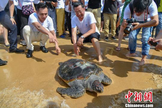 海龟被放流回归大海 骆云飞 摄