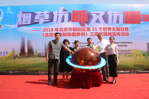 5月28日上午,“烟草伤肺又伤心”——2018年北京市朝阳区第31个世界无烟日暨《北京市控制吸烟条例》三周年现场宣传活动于朝阳公园正式举办。