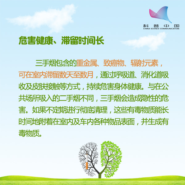 香烟对健康的危害大家都知道,直接吸烟者为一手烟,烟草产品燃烧而释放出的烟雾,谓之二手烟。但是,你听过三手烟吗?三手烟的危害可不比二手烟小哦……