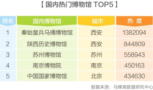 如今的博物馆不仅成功吸引了年轻人,还同时满足了家长“寓教于乐”的愿望,在亲子游群体中也大受欢迎。攻略显示,国内博物馆的热度在所有旅游主题中遥遥领先。秦始皇兵马俑博物馆、陕西历史博物馆、苏州博物馆、南京博物馆、中国国家博物馆成为国内最受欢迎的五大博物馆。(完)