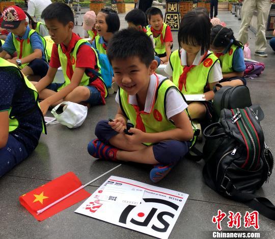 中新网厦门6月1日电 (杨伏山 李旭江)1日,适逢“六一”国际儿童节,来自厦门莲花镇和漳州华安县的140余名山区儿童、留守儿童相聚厦门方特旅游区,共绘百米画卷,畅游科技乐园。
