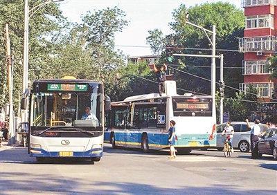 昨日上午,一组乘务管理员站在公交车车顶的照片在网络热传。照片显示,一位身穿制服的男子手里托举一根线缆站在车顶,路口来来往往的车辆穿行而过。