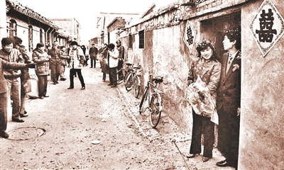 每一张照片下都有一行简洁的文字:“云居胡同,1985”“青风夹道,1992”“取灯胡同,1998”“大栅栏西街,2002”“大栅栏商业街,2015”······照片摄影者正是卤煮店老板贾勇。他指着墙上的照片说,“三十多年过去了,不仅照片上的人没了,照片上的胡同也大都消失得无影无踪。”