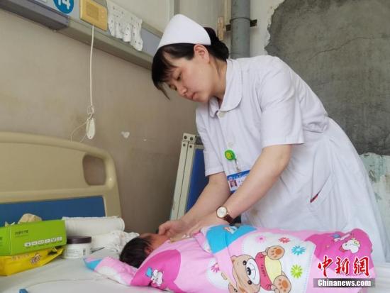 资料图:吕梁市人民医院儿科护士刘丽,在病房照顾患儿。闫彩琴 摄