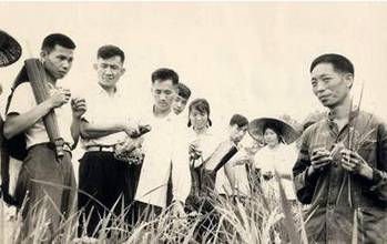 1967年,袁隆平在试验田介绍雄性不育水稻(图片来源于网络)
