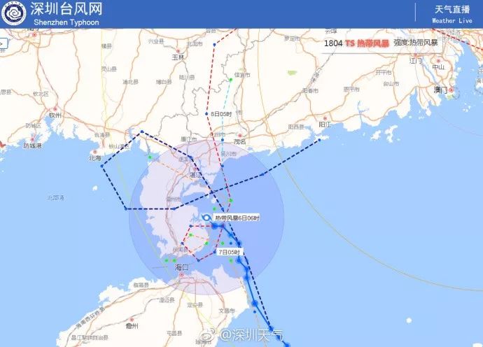 据省气象台今日06时40分发布的消息,今年第4号台风(热带风暴级)已于6月6日6时25分在湛江徐闻新寮镇沿海地区登陆,登陆时中心附近最大风力8级(热带风暴级,20米/秒)。
