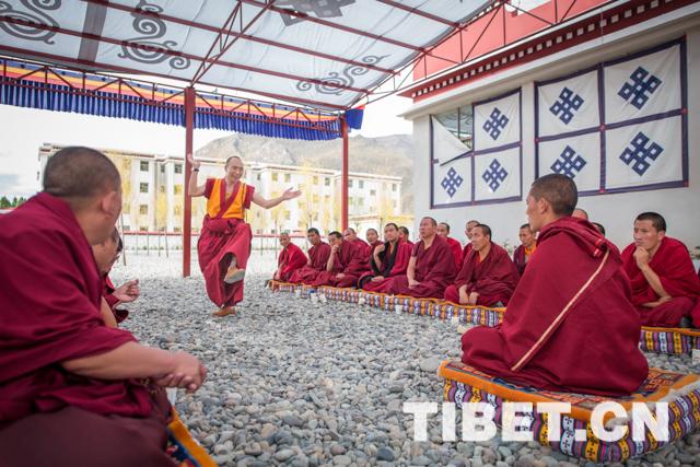 图为吉春荣布(站立者)正与同考者进行辩经。摄影:赵耀。