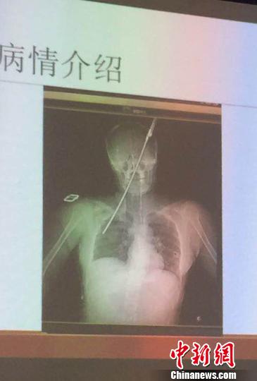侵入身体40厘米长的伞骨被取出。 刘肖宏 摄