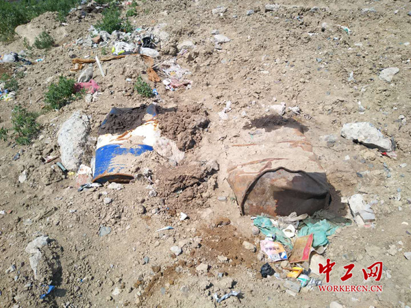 小月亮湾垃圾场部分废油桶已随垃圾掩埋
