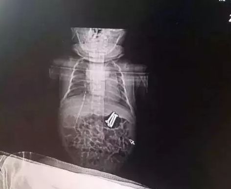 听见乐乐的话,惊慌失措的楠楠立马带着二宝去了当地医院就诊。在医院给二宝拍片儿后,发现二宝胃中不仅有螺丝钉,而且还有3枚。