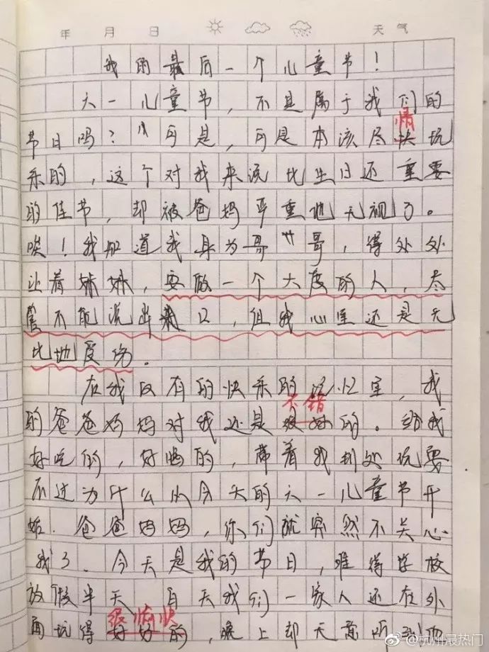 今天是我的节日,难得放假半天,白天我们一家人还在外面玩得很愉快,晚上却无意中听到爸妈说要去香港迪士尼玩。他们不停地说要给妹妹买机票,但却没有提到我。我沮丧极了,我到底做错了什么?为什么爸爸妈妈不带我去,是我的成绩不够好吗?还是不再爱我了?我很困惑也很苦恼。