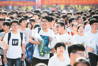 图为6月7日,在安徽省亳州市二中考点,考生正在走进考场。