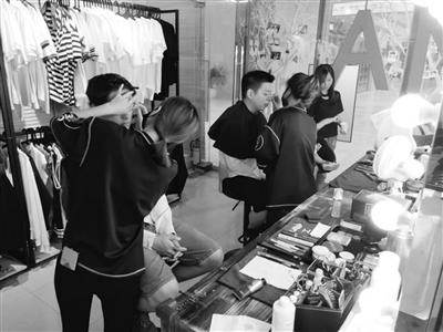工作人员为顾客化妆