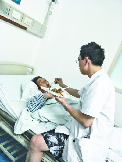 外婆被送出了手术室,覃伟接着准备下一台手术。等到他再次下台,已经是下午5点了。晚上还要接着上夜班的他,趁着半个小时空当跑到外婆的病床前给她喂饭。“工作太忙,实在没有办法专门在外婆病床前照顾尽孝,只有趁着没有病人的空隙去看看。”