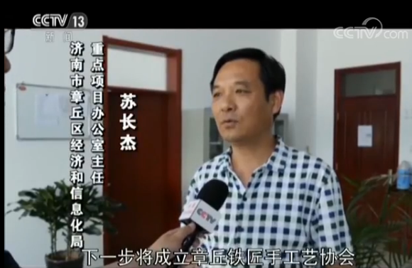 济南市章丘区经济和信息化局重点项目办公室主任 苏长杰:下一步将成立章丘铁匠手工艺协会,对铁锅行业生产经营进行规范,章丘铁锅也要申请地理标志商标。