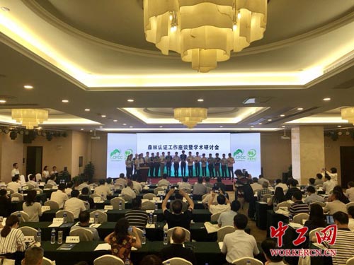 本次森林认证工作座谈暨学术研讨会以森林认证助推林业现代化为主题,围绕国内外森林认证的最新进展和发展态势,我国与各地森林认证工作成就,森林认证在促进森林可持续经营、增强森林生态服务功能、提高林业产业持续发展能力、助推新时代中国林业现代化建设等方面的作用,进行了研讨与交流。来自国家林业和草原局相关司局、直属单位,各省区市林业厅(局),以及地方林业部门相关负责人,国际组织、科研机构和林产品生产企业代表参加会议。会议期间,20家人造板和木质地板龙头企业共同发出绿色发展倡议,启动了第二批木地板加工企业认证示范。