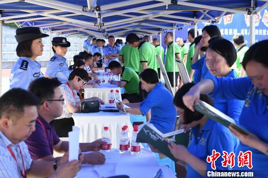 图为戒毒人员围在展台前寻找适合自己的工作岗位。 陈超 摄