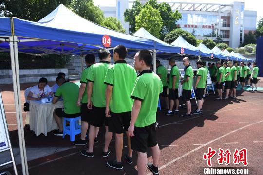 图为戒毒人员排队等待应聘。 陈超 摄