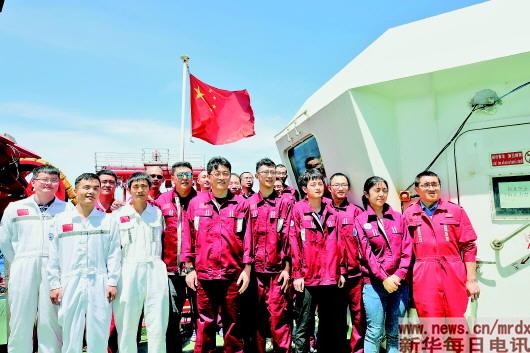 今年上半年,新华每日电讯记者跟随我国新一代海洋科学考察船“科学”号,到西太平洋麦哲伦海山进行为期40多天的科学考察。“人在一起叫聚会,心在一起叫团队”,在科考船上,一批共产党员挑起了工作的大梁,党旗在海风中高高飘扬。
