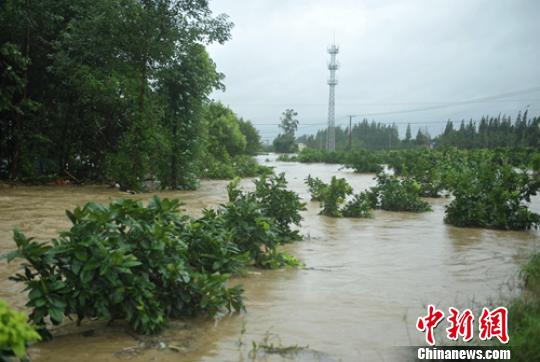 西来镇泡在洪水中的果树。 刘忠俊 摄