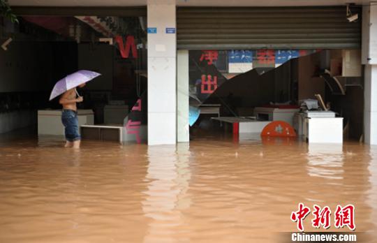 灾情发生后,中新网记者紧急赶往受灾最严重的蒲江县,汽车驶上成雅高速公路,路上暴雨如注,路面积水十分严重。走进蒲江寿安镇老街,眼前一片汪洋,洪水中不时有纸箱、油桶等顺水漂来,几名群众冒险从近2米深的洪水中趟水而过。