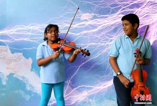 张昕宇和梁红为哥伦比亚的孩子准备音乐会。受访者供图