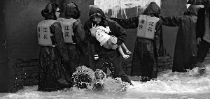 在蒲江,部分地区房屋被淹,当地公安部门全力保障道路通畅,并参与转移受困群众。营救过程中,感人的一幕发生了——数名蒲江交警用铁板当“救生船”,用自己的身体当“船桨”,泡在洪水中,只见水已经漫过交警肩膀,大家奋力将船推着前行。而在船上,群众打着雨伞,安心地坐着,一名年迈的老人则被交警紧紧扶着,并为他打伞。