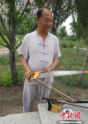 中新网长春7月5日电 (李明姝)《霸王别姬》《野蜂飞舞》《茉莉花》……这些被中国听众熟知的曲调,62岁的吉林长春人梁林生都能拉出来,而他所使用的乐器是锯琴。