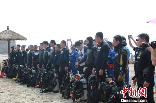 18名志愿者穿戴装备准备下海打捞海洋垃圾 何志鹏 摄