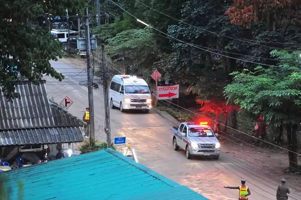 这是8日在泰国清莱拍摄的运送被解救出的少年足球队员的救护车。新华社 图