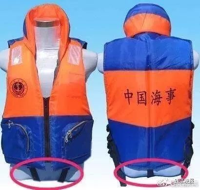 赵亮明做了详细说明:第一步,救生衣套在颈上将长方形浮力袋置于身前系好领口的带子。第二步,将左右两根腹带分别穿过左右两边的扣带环,绕到背后交叉。第三步将腹带穿过胸前的扣带环并打上死结或者固定好扣带环。然后把裆部的两根扣带扣牢固。最需要注意的一点就是要将带子打死结,以免跳水时受到冲击或漂浮较长时间而松开。