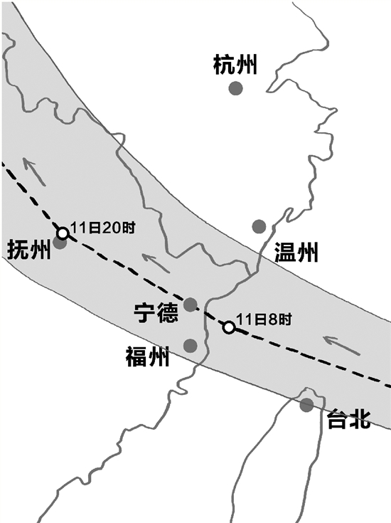预计明天早晨到上午在福建福清到浙江温州之间沿海登陆