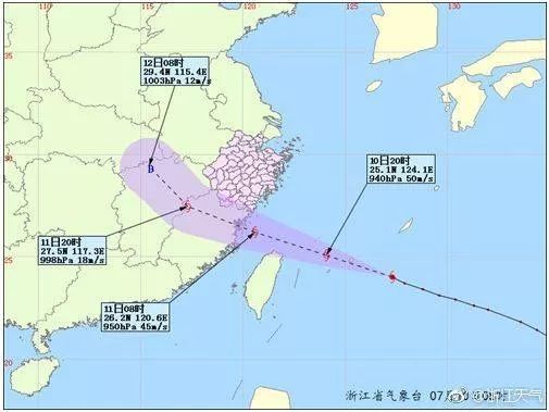 浙江省气象台预计,“玛莉亚”将以每小时约30公里的速度向西偏北方向移动,强度变化不大,今天下午进入东海东南部海域,明天(11日)上午在福建福清到浙江平阳之间沿海登陆(强台风级,14~15级),登陆后继续向西北方向移动,强度逐渐减弱。