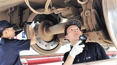 在采访的过程中,旁边另一辆动车组的检修人员来到我们身旁,示意我们捂住耳朵——原来,那辆动车将进行鸣笛检测。两声鸣笛过后,向阳告诉记者,这也是有电检查的一部分,此外还包括前灯、雨刷、制动系统的检测。