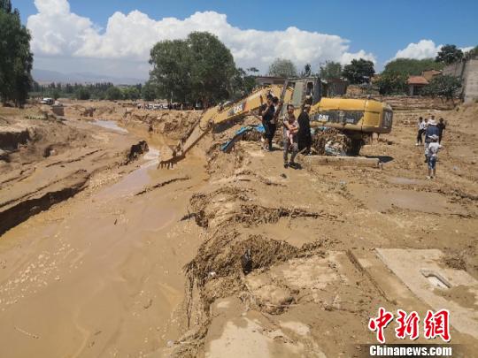 7月18日晚,甘肃临夏州东乡县、广河县、和政县遭受严重暴雨、山洪灾害,造成重大人员伤亡。图为7月19日,甘肃临夏州东乡县达板镇崔家村抢险救援现场。 杨艳敏 摄