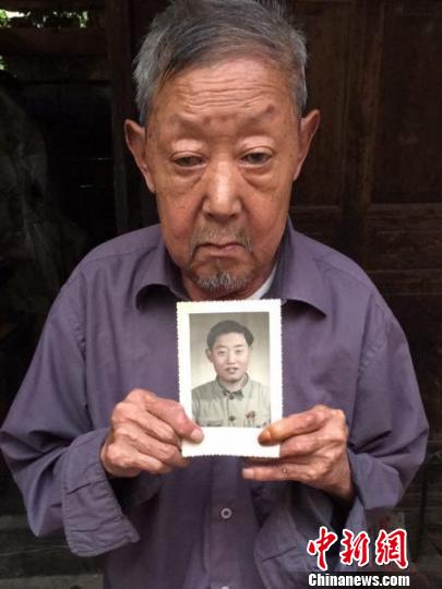 手捧弟弟刘法宪烈士遗像的大哥刘发文 王庆泽 摄