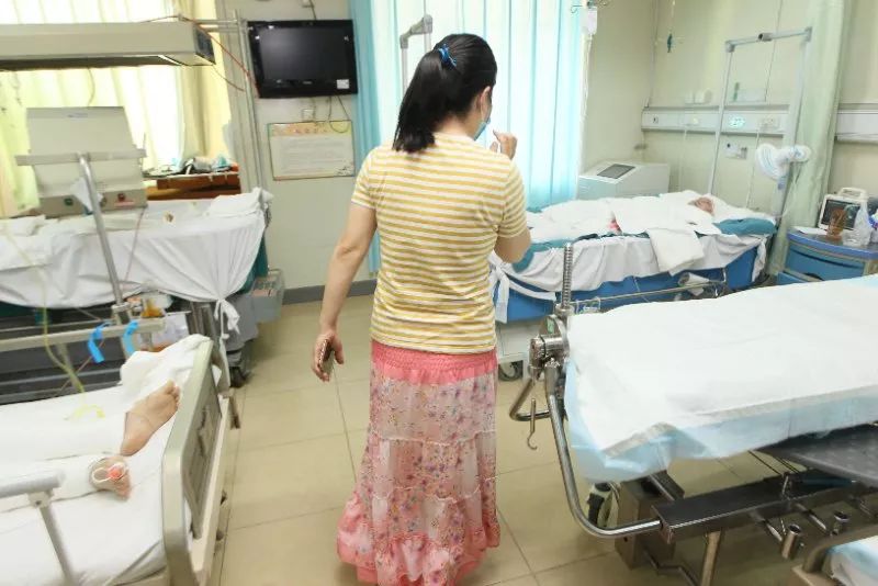 8时40分,康静身着长裙走出了病房。康静的病房离重症监护室虽仅有几步之遥,但她走得很吃力,基本上一步一咬牙,一步一停顿。在重症监护室门口,康静突然停住了脚步,此时她的脸色有些发白,脸颊上满是汗珠。康静的丈夫劝她休息一下再走,康静微笑着说:“我没啥事,我知道爸爸还在等着我。”
