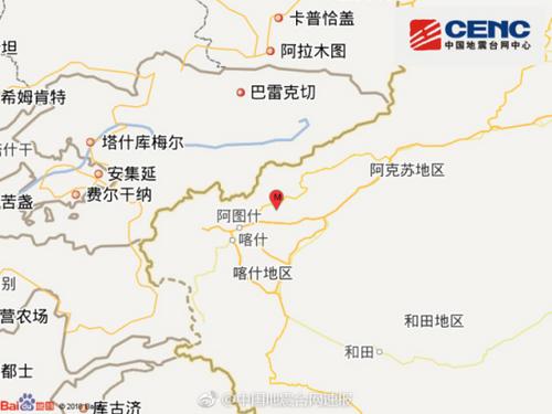 中新网7月23日电 据国家地震台网官方微博消息,中国地震台网正式测定:07月23日04时23分在新疆克孜勒苏州阿图什市(北纬40.16度,东经77.17度)发生3.4级地震,震源深度12千米。