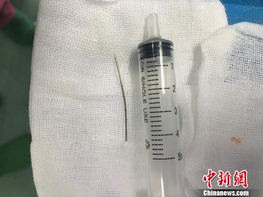 7月22日晚,甘肃广河县一名5岁女孩误吸大头针,医院通过儿童支气管镜将大头针顺利取出。 钟欣 摄